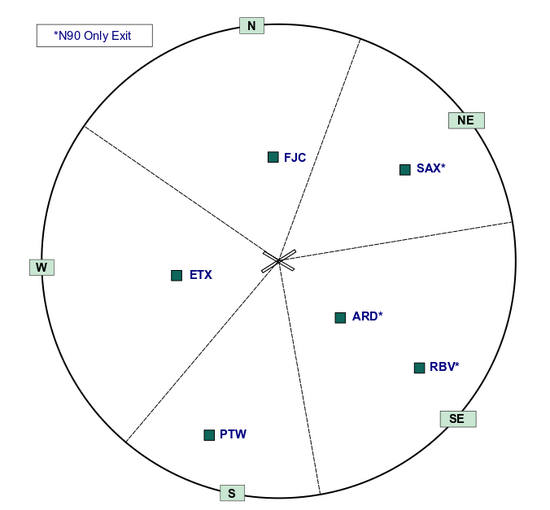 While strict exit direction points are not required at ABE, the guide above may come in handy for directing pilots to proper exits for departing the area.