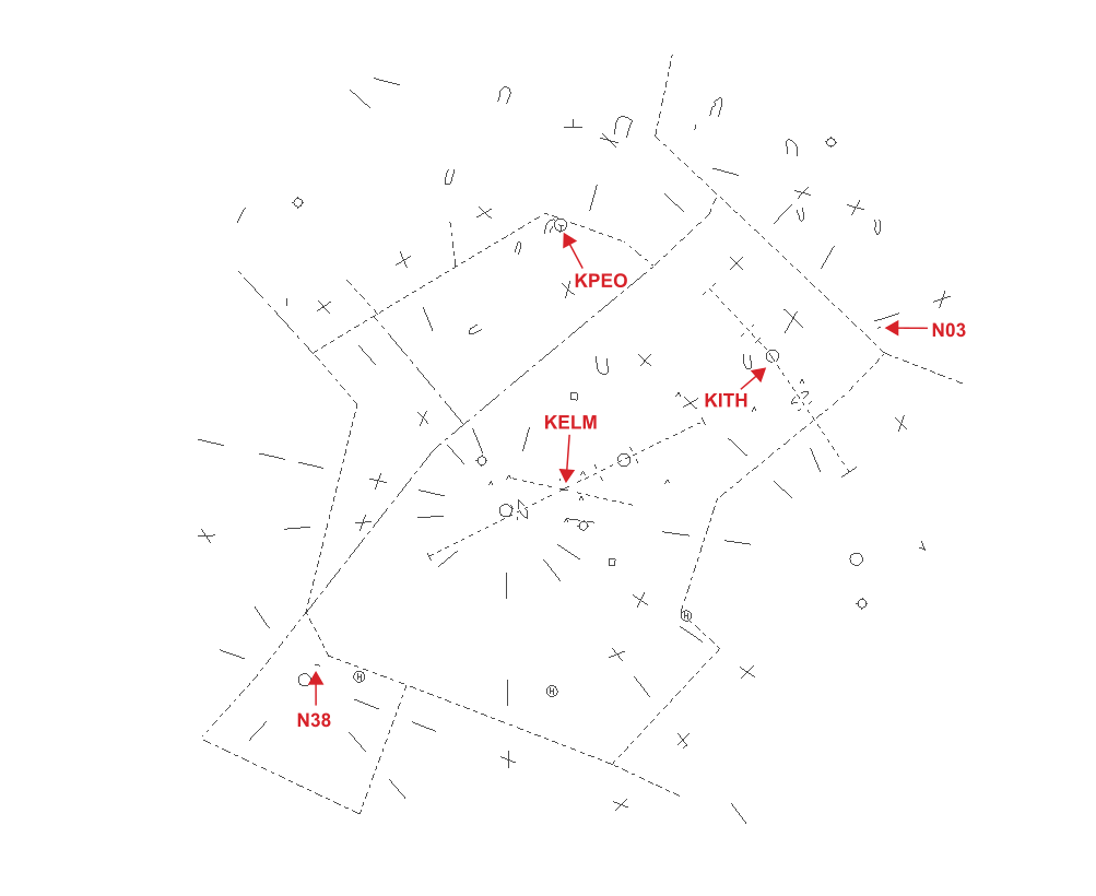 - There is no published departure procedure out of Elmira. All aircraft must be cleared to their destination via radar vectors to an ELM exit.