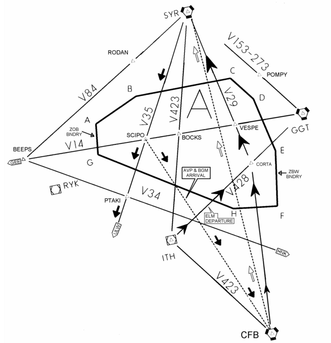 This agreement prescribes transfer of control procedures, radar handoff procedures, route/altitude assignments, and delegation of airspace between New York ARTCC (ZNY) and Syracuse TRACON (SYR).