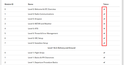 • Prior to completing your facility Practice Clearances Exam or Local Control Scenarios, it is required that you have completed the CBTs up to, but not including, the next Certification Level. Example, if you have passed your ZNY S1 and VATUSA S1, you need to have completed all the CBTs up to, but not including, Level 2 before you take the Practice Clearances Exam. Also, it is required that you have covered all the required CBTs before you schedule any live training session with a Mentor or Instructor.