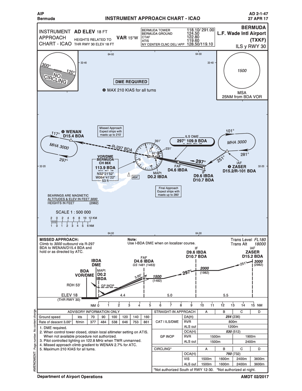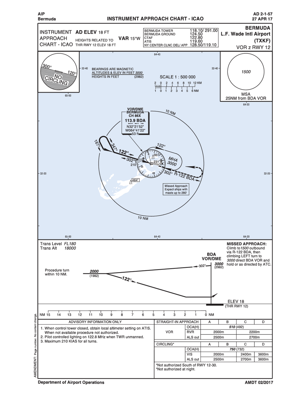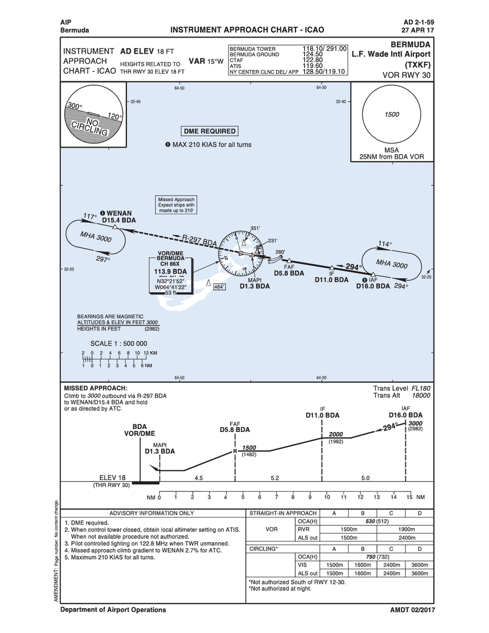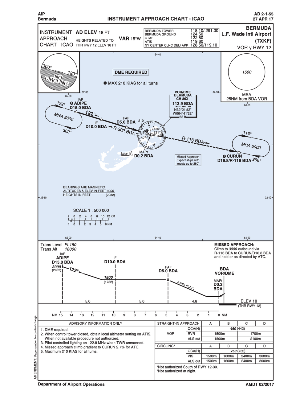 • L. F. Wade International Airport is located inside Bermuda Class Delta Airspace. All VFR traffic must establish two-way radio communications.