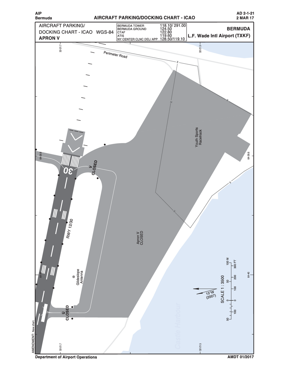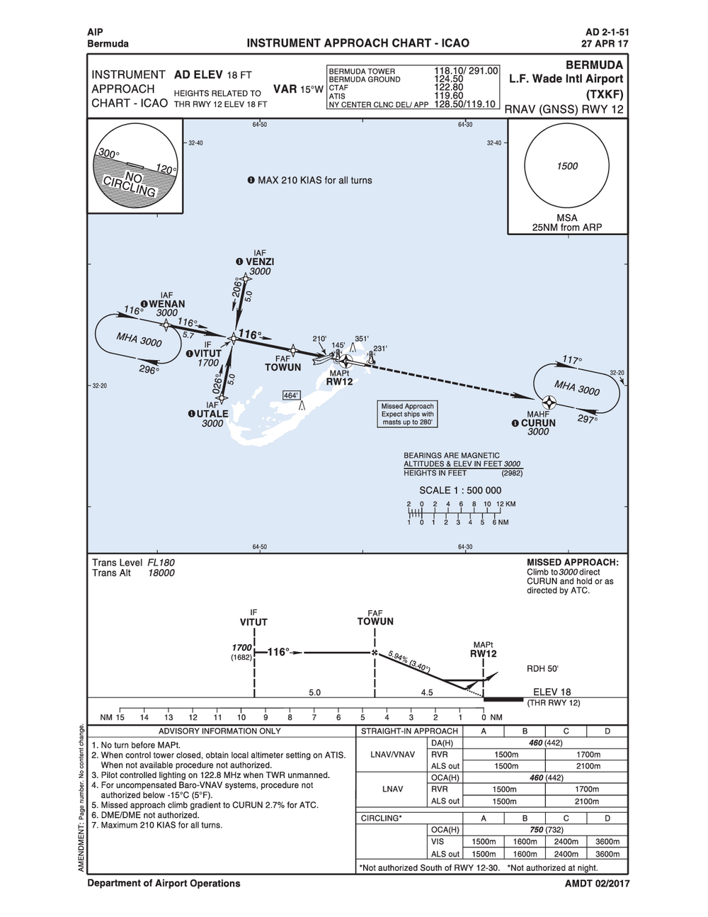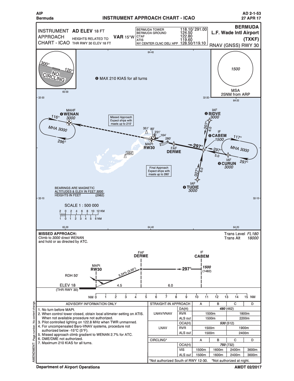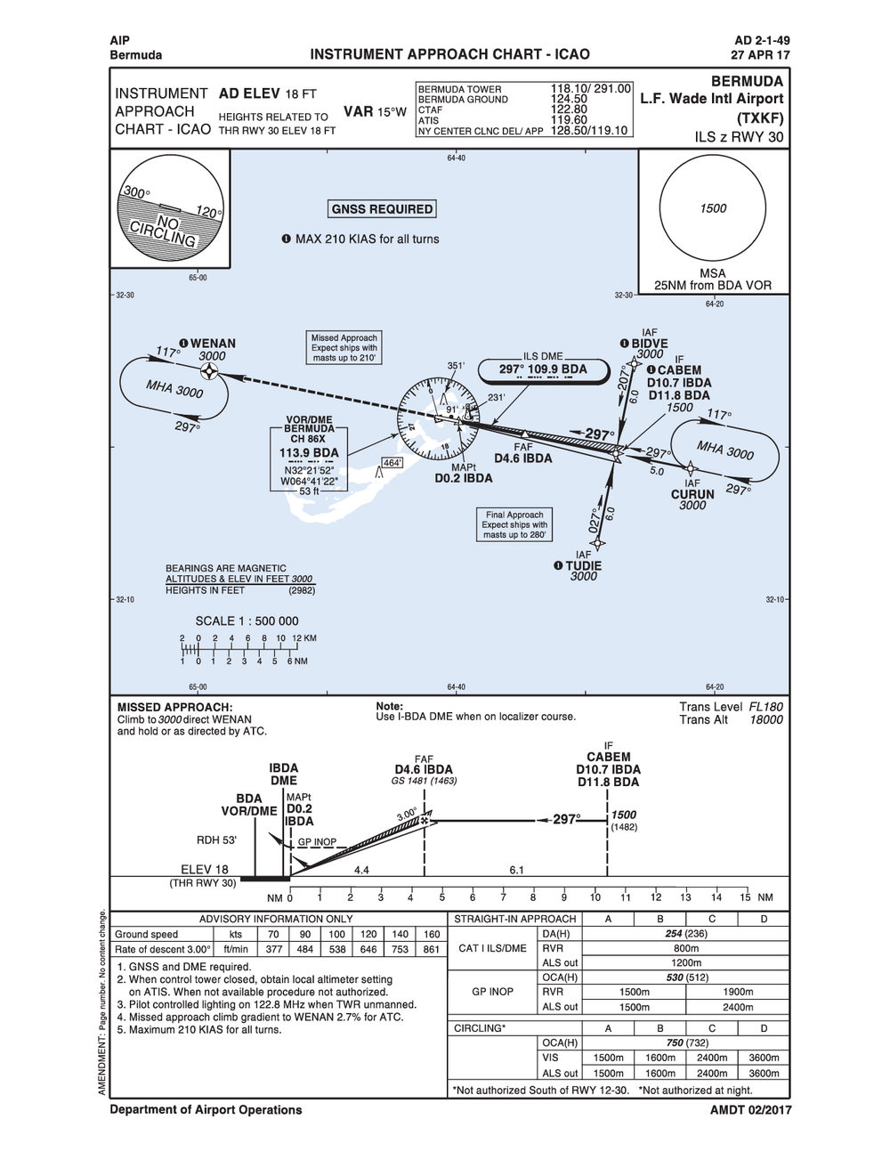 • L. F. Wade International Airport is located inside Bermuda Class Delta Airspace. All VFR traffic must establish two-way radio communications.