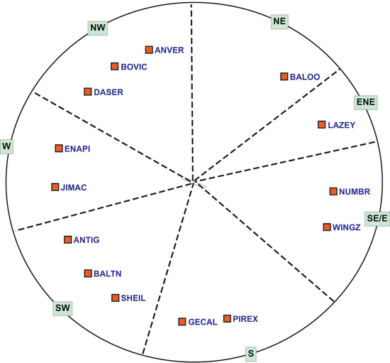 Note: When using this chart ensure that the longitudinal portion (W) is not greater than 60; if it is, then issue the next lat/lon pair after the exit point.